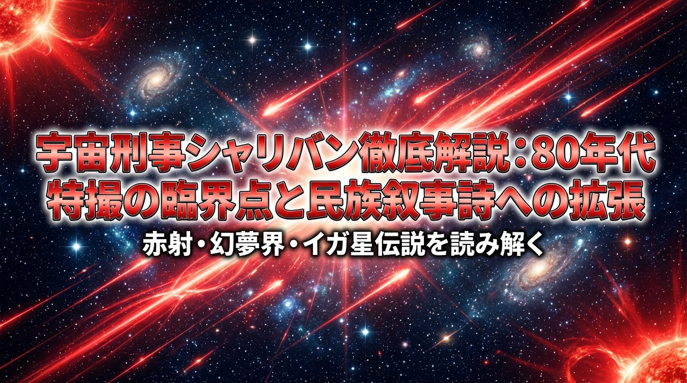 その先駆者である『宇宙刑事ギャバン』が1982年に熱狂的な成功を収めた後、1983年3月4日に放送を開始した第2作『宇宙刑事シャリバン』は、単なる続編の枠を超えた革新的な作品として特撮史に刻まれることになります。本作が「80年代特撮の臨界点」と評される理由は、ヒーロー番組のフォーマットを借りながら、その物語構造を「一話完結の勧善懲悪」から「民族の運命を背負った大河ドラマ」へと拡張させた点にあります。