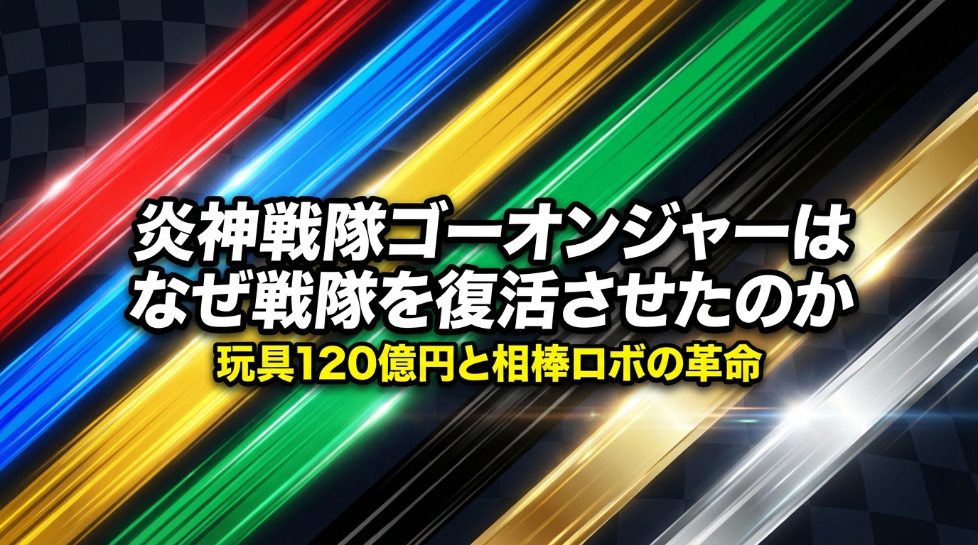 『炎神戦隊ゴーオンジャー』(2008-2009)は、明るい作風と革新的な玩具設計によって、スーパー戦隊シリーズの流れを大きく変えた作品です。本記事では「2008年という転換点」「玩具売上120億円の構造」「相棒ロボという発明」を軸に、作品性とメディア戦略を総合的に検証します。